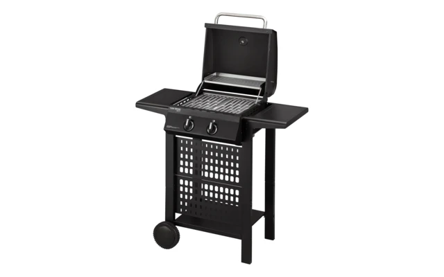 - 2 quemadores de acero inoxidable de regulación continua para un asado potente directo e indirecto