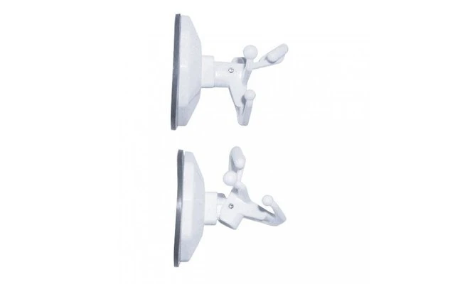 Multifuncional con varios colgadores. Muy fácil de montar gracias a la ventosa especial que se autoadapta a las superficies lisas plegando el gancho. Precio por pieza.