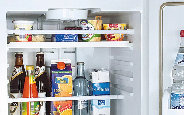Barra de sujeción telescópica con un fuerte muelle en el interior y tapones de goma en los extremos. La barra se sujeta contra el contenido del frigorífico o del armario y evita de forma fiable que se deslice