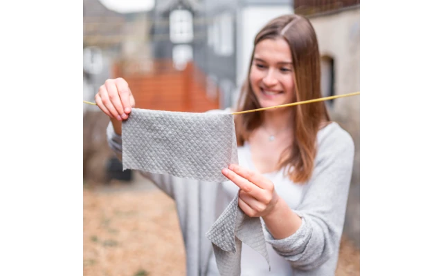 El papel de cocina lavable de celulosa de madera y algodón 100% natural es la alternativa ecológica al papel de cocina desechable convencional o a los paños de limpieza de fibras sintéticas. Los paños sustituyen hasta 2700 paños de cocina y pueden lavarse fácilmente en el lavavajillas o en la lavadora, lo que los hace reutilizables varias veces.
