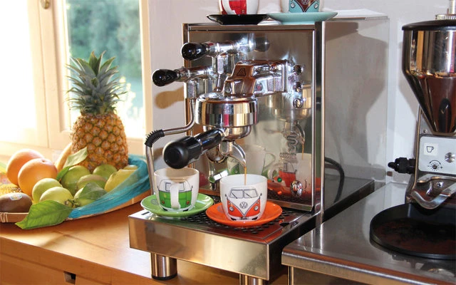 Estas simpáticas tazas de espresso con el típico diseño frontal de VW Bulli son un verdadero placer para beber espresso. Las 4 tazas, cada una con un platillo a juego, están fabricadas en porcelana New Bone China y son un punto de atracción en la cocina de cualquier aficionado al Bulli. Las elegantes tazas se entregan en una caja de regalo y constituyen un magnífico obsequio.